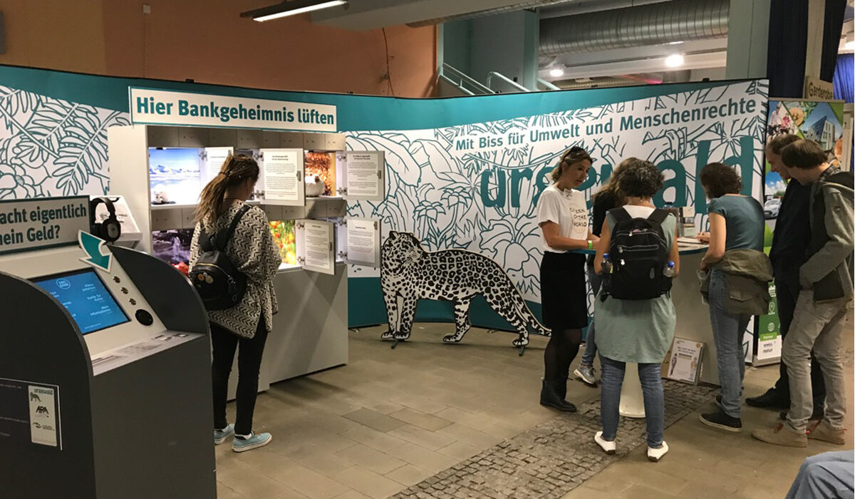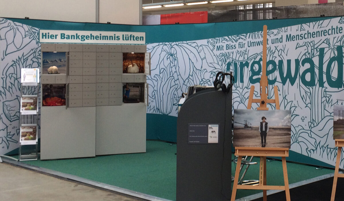 Für die Umweltorganisation URGEWALD wurde 2016 ein neuer Messeauftritt entworfen und in der Umsetzung eng betreut.